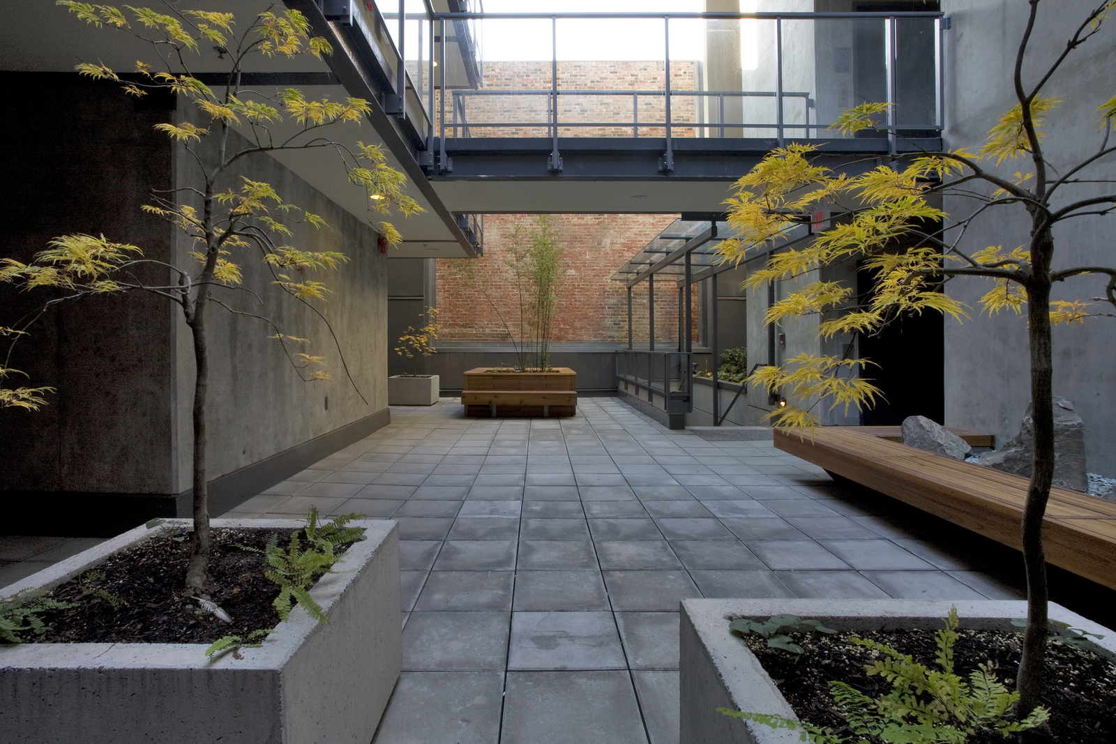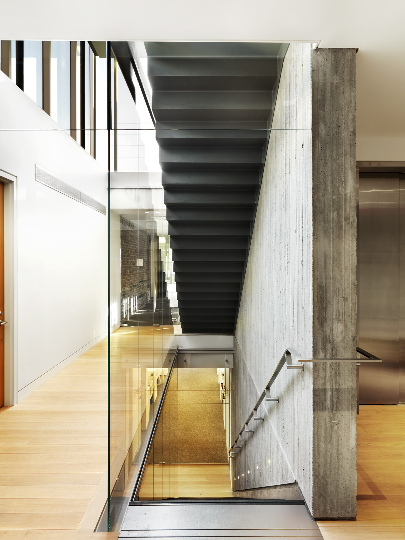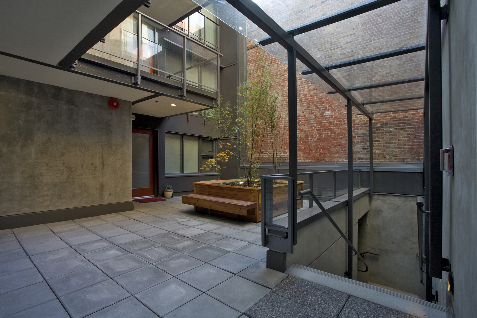 Finishes included architectural concrete, imported kitchens, wood flooring, frameless glazing, and ceramic and stone tile, contributing to a modern interior within a historically sensitive urban context.