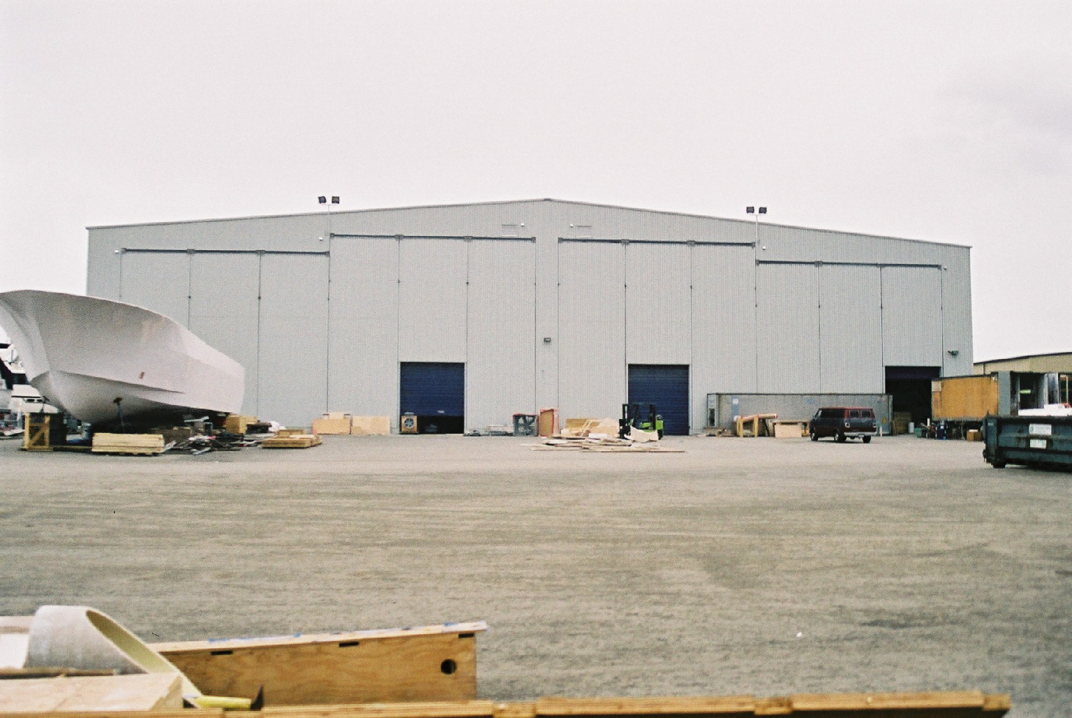 The project included concrete foundations on grade and a pre-engineered building with a 100-foot clear span and a 43-foot clear height. To accommodate vessel movement, six large removable wall panels (each ranging from 15 ft. x 37 ft. to 41 ft.) were incorporated into the building design.